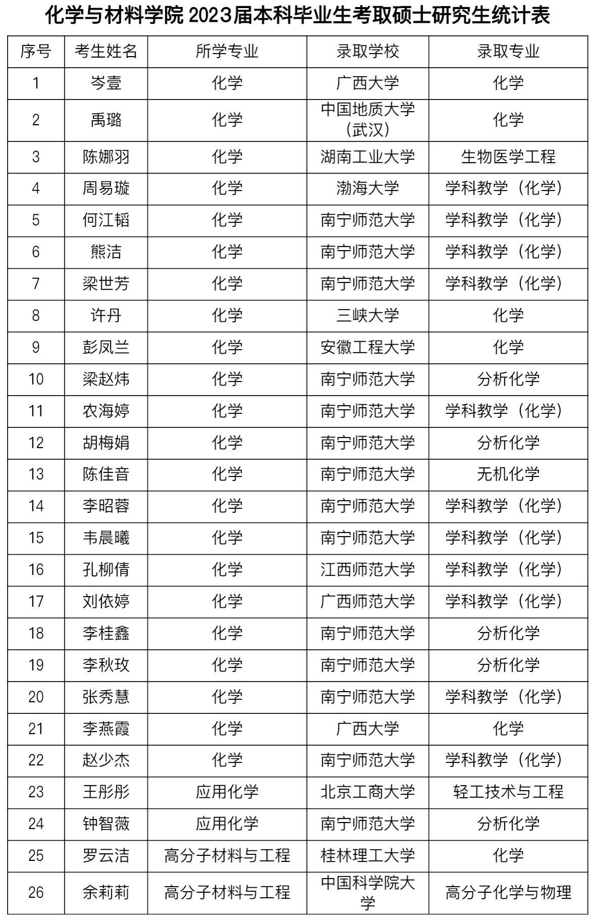 2023届本科毕业生考取硕士研究生统计表