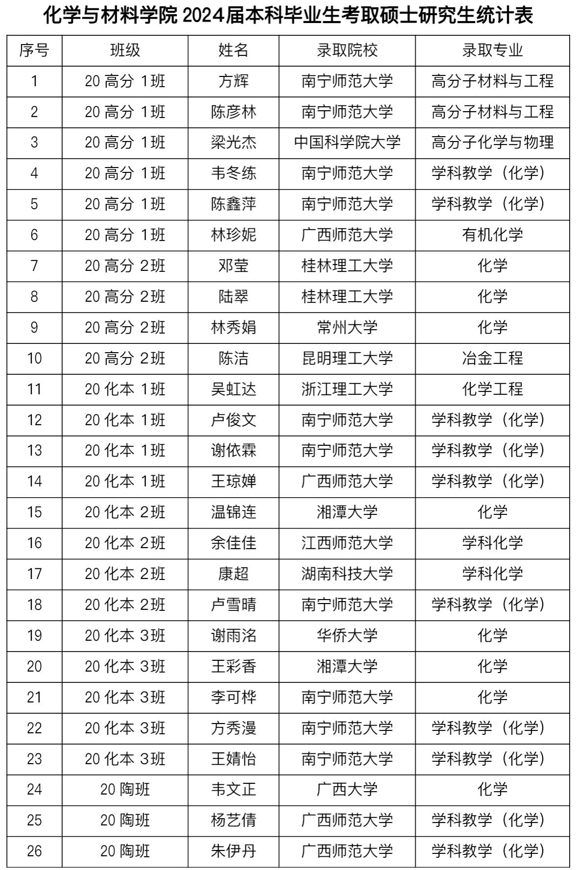 2024届本科毕业生考取硕士研究生统计表